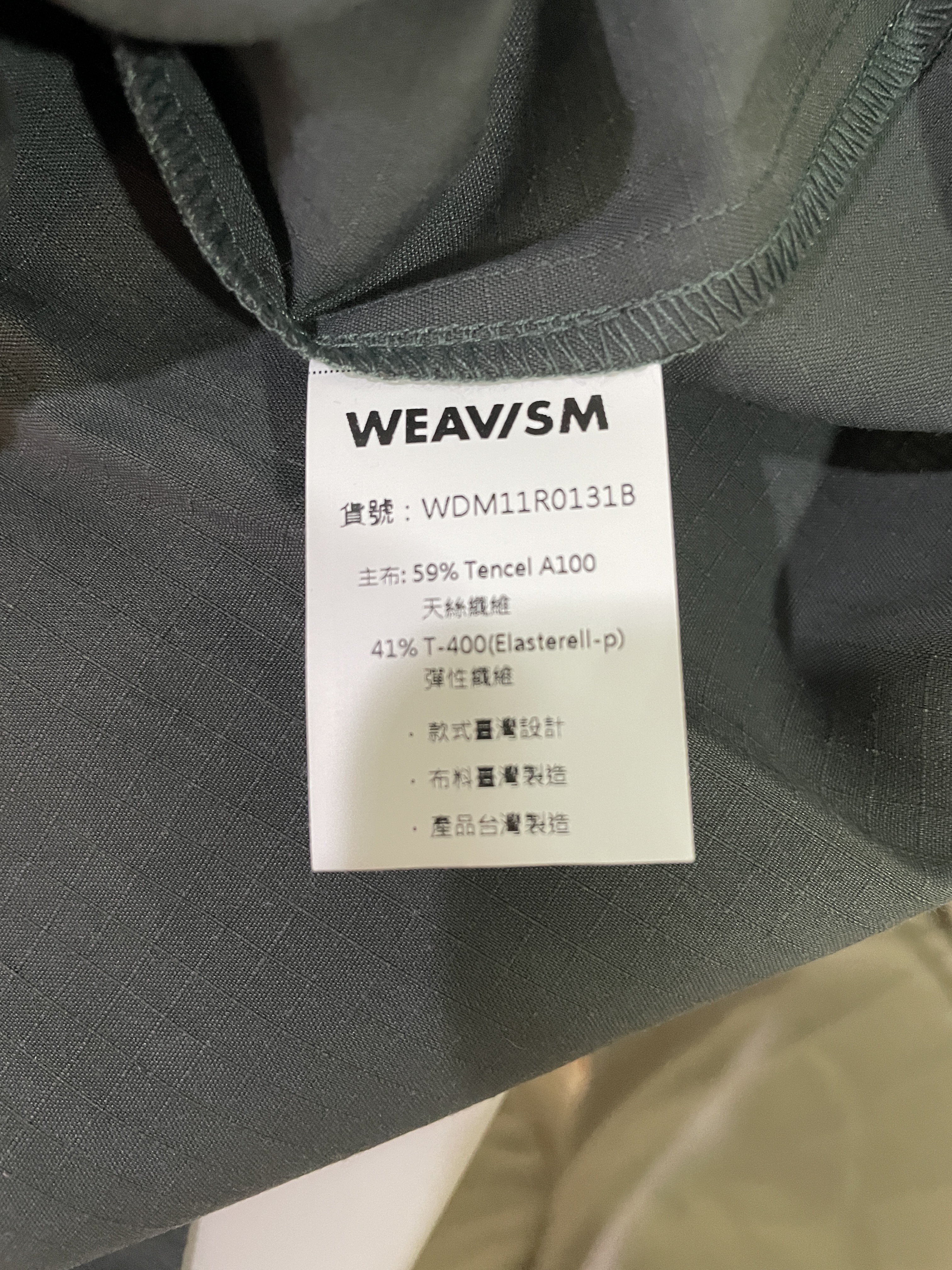 因為工作因素,時常會跟台灣布商聯繫接洽。在一次拜訪等待過程中,無意間發現樣品間展示的成衣款式有強烈的設計感與獨特的剪裁,一問之下,居然是該布料商的第二代自行創業的機能性街頭風格服裝品牌-WEAVISM,都是使用自家台灣生產的布料,所以服飾都是台灣生產製造,也著重永續環保理念。